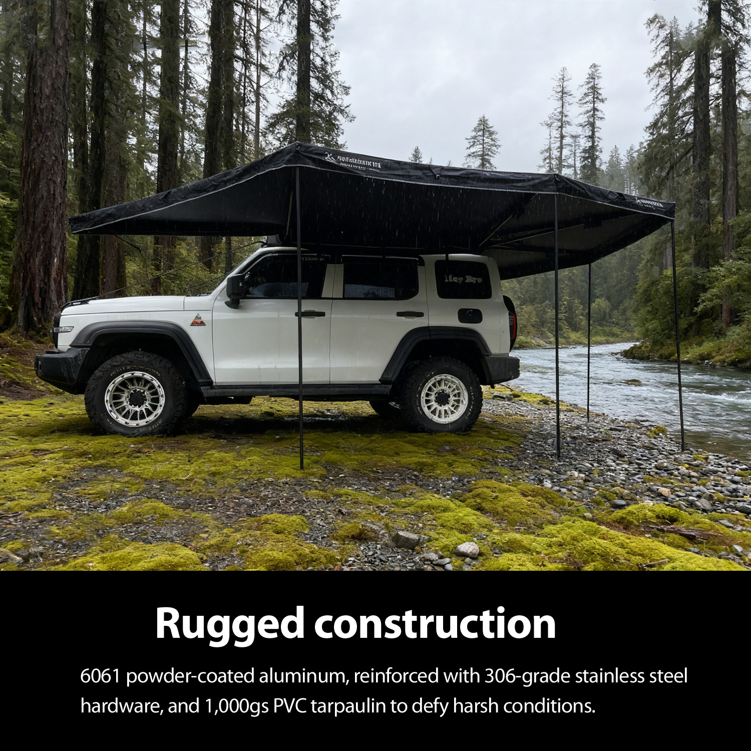 Speed and simplicity are make-or-break factors for outdoor gear buyers, and this 360-degree foxwing awning tent delivers an unparalleled user experience. Engineered for instant free-standing deployment, it cuts setup time to minutes: simply unfold the 6061 powder-coated aluminum frame, extend the telescopic poles, and secure the canopy—no separate stakes, guy lines, or complex tools required. Packdown is just as effortless: fold the frame, roll the awning, and stow it in the included heavy-duty waterproof carry bag (no extra storage accessories needed). This seamless usability eliminates end-user frustration, fuels 5-star reviews, and positions your brand as a trusted source for hassle-free overland gear—directly boosting repeat orders and word-of-mouth referrals.