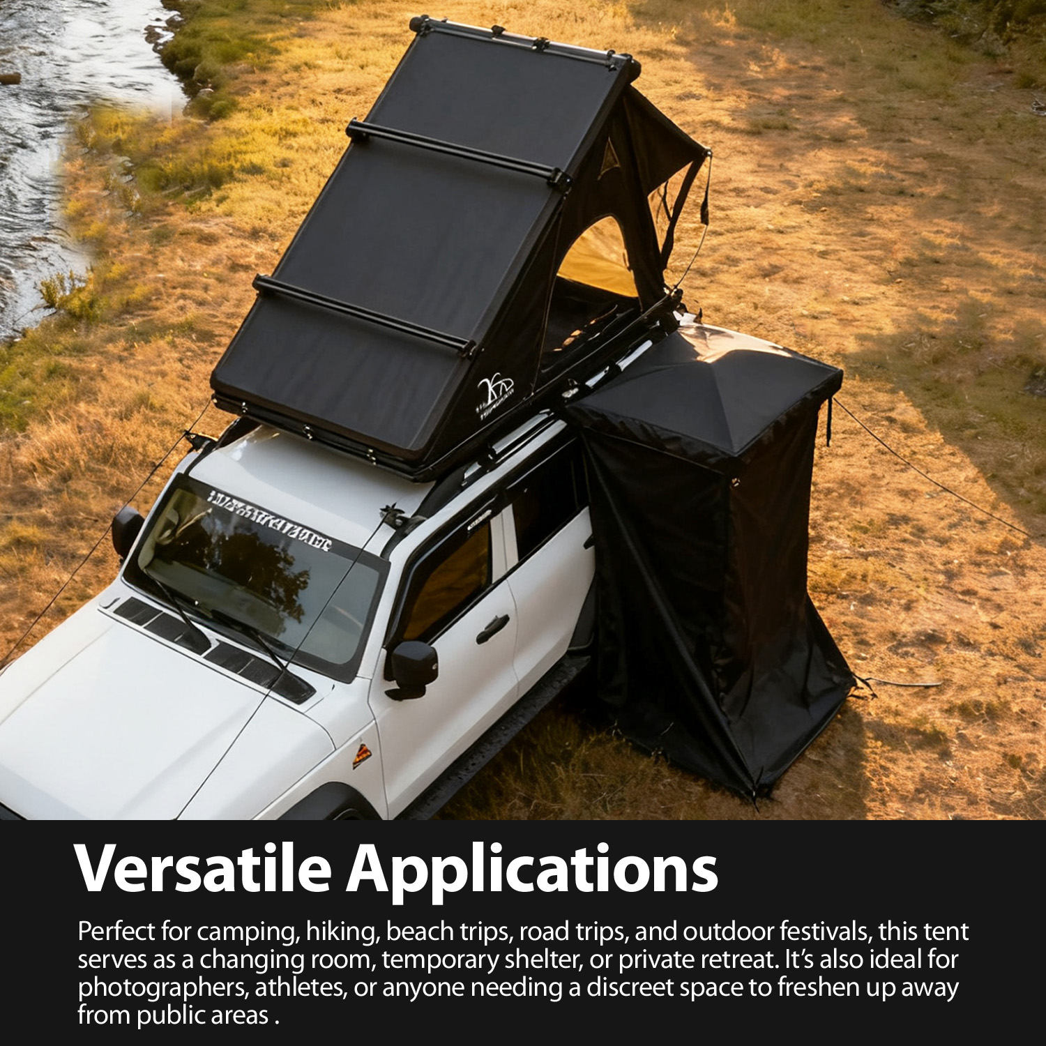 Versatility and convenience are decisive selling points in the outdoor gear market—and this car side shower tent delivers both to win over end-users and reduce your support burdens. Engineered as a removable awning annex, it sets up in minutes: attach the square aluminum frame to existing car awnings via included L/flat setup plates and bolts, spread the 680GS PVC top cover (supported by 4-fold ultralight aluminum poles), and secure with slide fasteners and tension straps—no extra adapters or complex tools required. Beyond a shower tent, it functions as a private changing area or retreat, eliminating end-users’ need to purchase multiple products. Packdown is equally seamless: fold it into a compact carry bag that fits easily in car trunks. This multi-use, hassle-free design fuels 5-star reviews, positions your brand as a provider of practical outdoor solutions, and resonates with casual campers, frequent travelers, and hardcore overland enthusiasts alike.