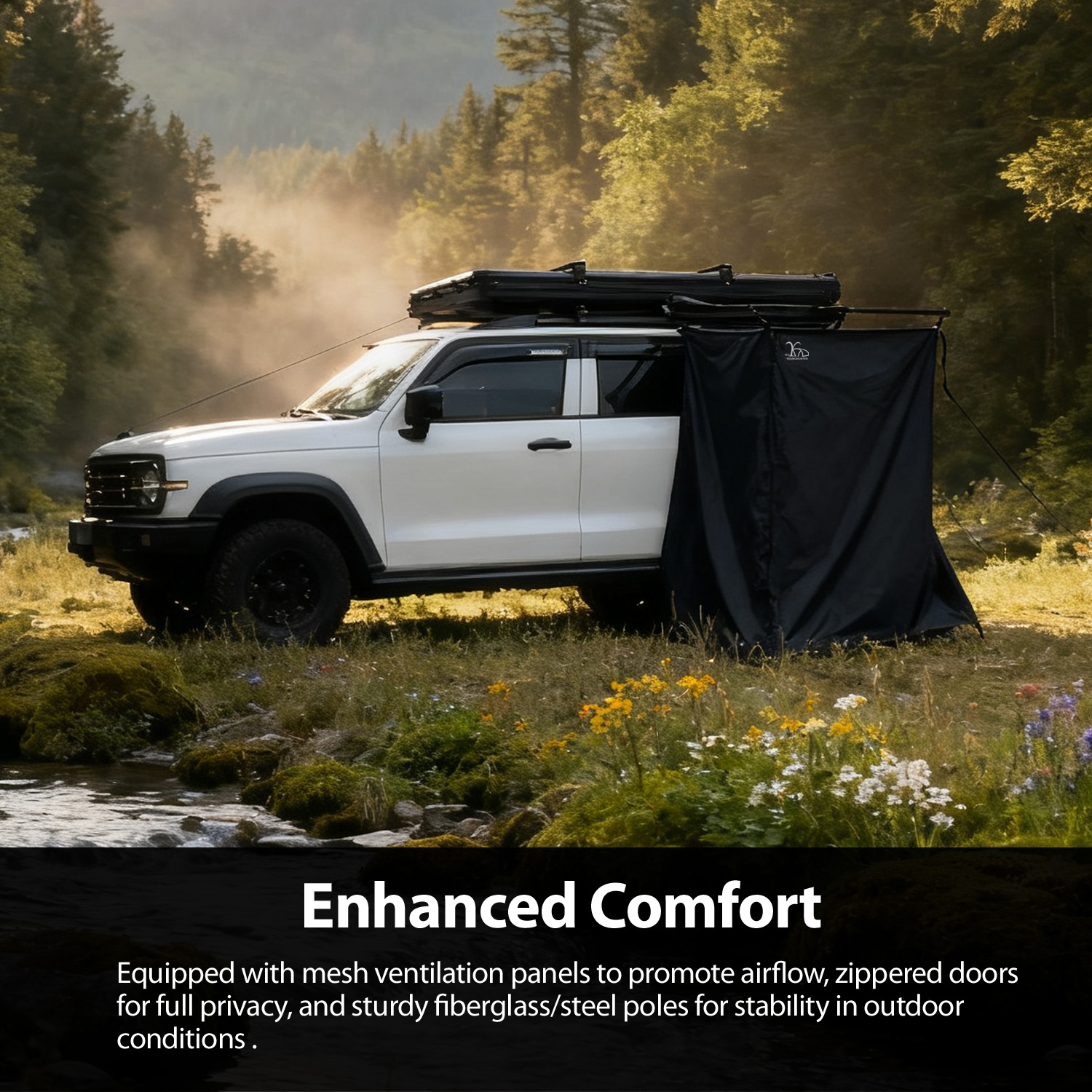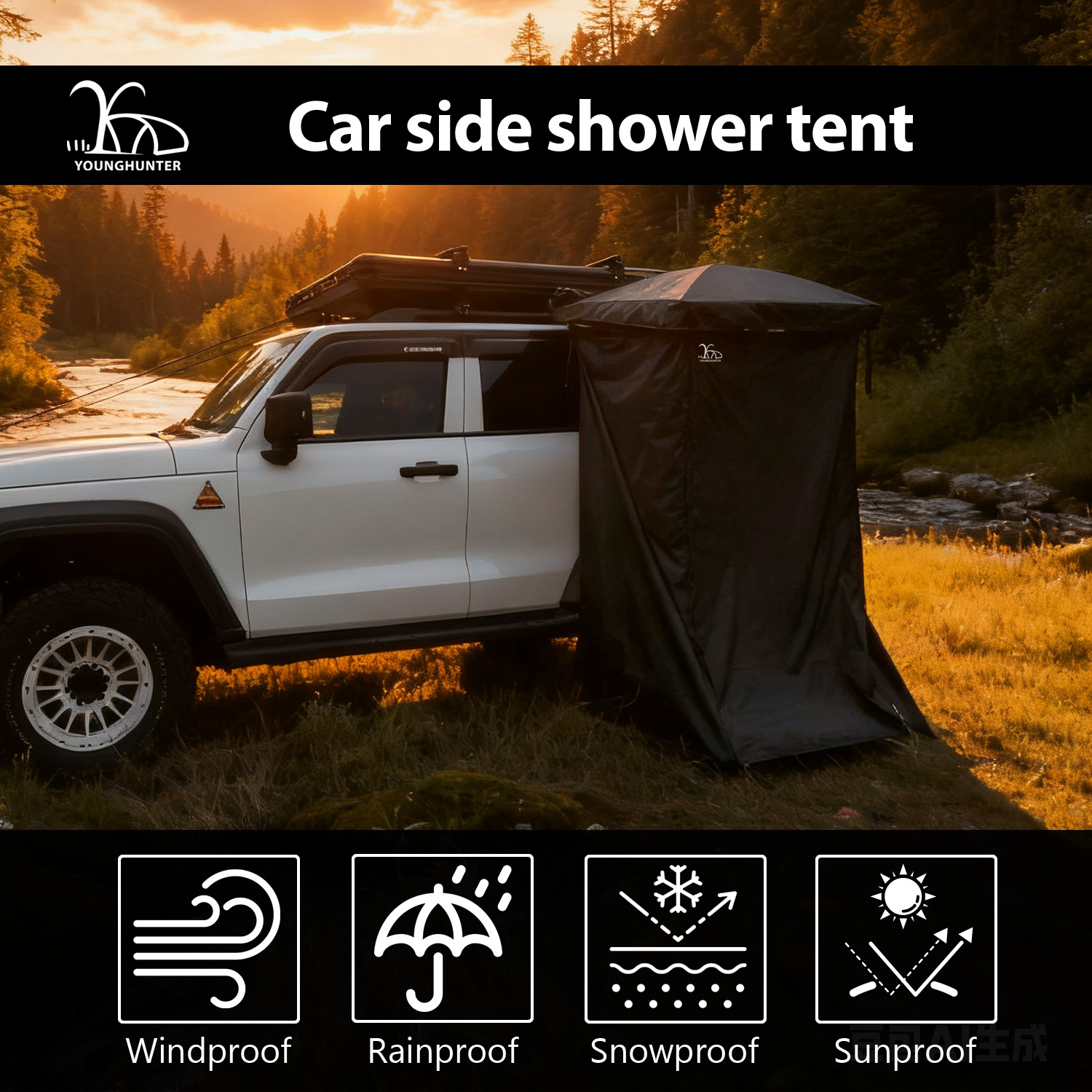 For outdoor gear wholesalers, SUV/4WD accessory distributors, and overland equipment retailers, sourcing versatile privacy solutions is key to driving customer loyalty and increasing average order value. The YOUNGHUNTER Car Side Shower Tent—a multi-functional awning annex—stands out as a high-potential product: featuring 43.3"L×39.3"W×78.7"H spacious design, 3000mm waterproof 680GS PVC fabric, and easy awning attachment. Tailored for campers, beachgoers, and overland adventurers, this low-competition, high-search item enhances your inventory portfolio, reduces operational risks, and fuels sustainable sales growth.